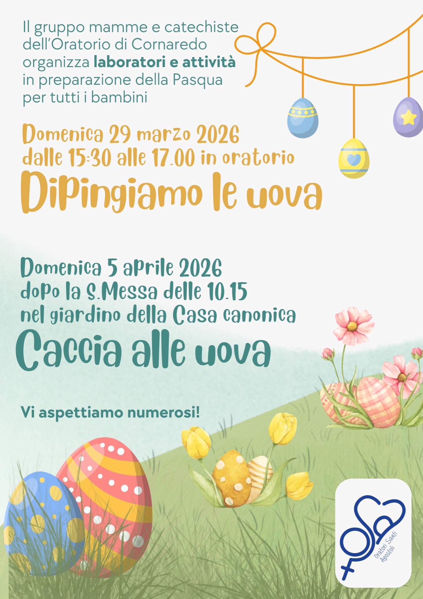 Domenica 29 marzo dalle 15.30 attività di laboratorio di decorazione uova di Pasqua in Oratorio Cornaredo per tutti