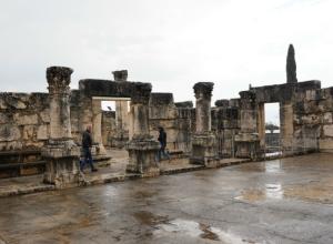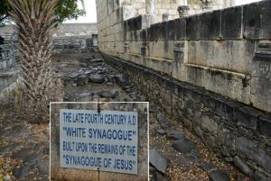 ![]() | Cafàrnao - la città di Gesù Al tempo di Gesù Cafarnao era un posto di frontiera su una importante via di comunicazione verso Damasco, ed un centro di pesca sulla sponda del Lago di Tiberiade (o Mare di Galilea o Lago di Genesaret) pescosissimo allora come ora. I Francescani della Custodia di Terra Santa nel 1894 acquistarono il luogo - ormai abbandonato da secoli - da certi beduini che sui pochi ruderi esistenti aveno sistemato alcuni loro depositi. Otto diverse campagne di scavi, buona parte condotte direttamente dai Francescani, hanno fatto affiorare il centro che vediamo ora e che "piacerebbe" anche allo Stato di Israele, molto attento alla sua storia. La sinagoga i cui resti vediamo nelle immagini è successiva di alcuni secoli a Gesù e poggia sulle fondamenta della precedente, come si vede chiaramente dall'immagine di sinistra (e come specifica il cartello). Quella "vecchia" è stata sicuramente molto frequentata da Gesù, che abitava a pochi passi durante la sua vita pubblica. | ![]() | |||